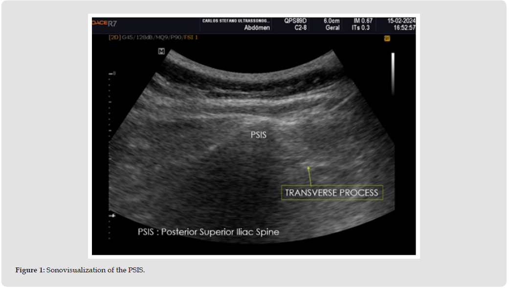 Bone marrow aspirate (BMA) collection is an essential procedure for obtaining progenitor cells used in regenerative therapies [2,18,19,22]. Traditionally, the technique involves approaches to the anterior or posterior iliac crest, performed “blindly” or with the aid of fluoroscopy [24,25]. However, these approaches present challenges such as difficulty of access in patients who are obese or have complex anatomy, significant discomfort from needle manipulation, and risks associated with exposure to ionizing radiation. [24-26]. The use of ultrasound- guided techniques has taken interventional pain medicine to another level [2,27-29]. Ultrasound allows real-time visualization of anatomical structures, facilitating the ideal location for puncture and minimizing the risk of complications [24,25,27-29]. In this context, the present study aims to describe and evaluate a technique for collecting BMA by ultrasound-guided posteromedial approach, seeking to offer a safe and effective alternative to traditional approaches. This innovation is in line with current trends in minimally invasive and image-guided procedures, aiming to optimize therapeutic outcomes.