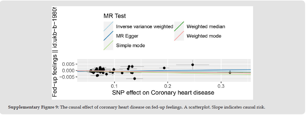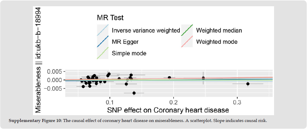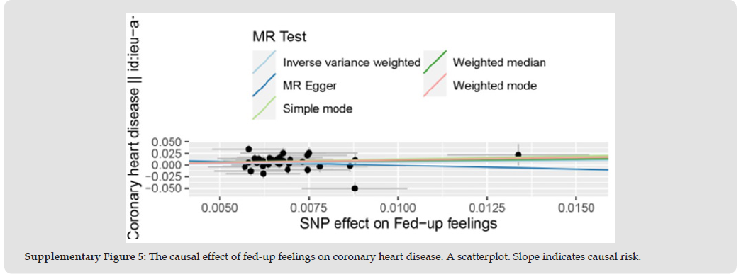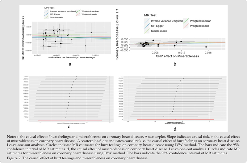 And the link between subjective negative emotions and CHD cannot be confirmed due to potential bias caused by confounders in observational and cohort studies. As a result, we conducted a MR study to confirm whether there is a causal relationship between hurt feelings, guilty feelings, fed- up feelings, miserableness, and CHD. The causal effect of most subjective negative emotions on CHD has been well established, but whether CHD can cause subjective negative emotions remains somewhat controversial. Decades of research have revealed that CHD patients with comorbid depression or anxiety and depressive states are common in the real world and that the two share common underlying mechanisms. Khandaker and his colleagues found that triglycerides, Interleukin-6 (IL-6), and C-Reactive Protein (CRP) were all common causal risk factors for both depression and CHD through a MR analysis of data from a cohort study [4]. Meanwhile, data from a large-sample prospective epidemiologic survey showed that patients with severe mental illness (including schizophrenia, bipolar disorder, and major depressive disorder) had an increased risk of CHD compared with controls (adjusted hazard ratio (adj HR)=1.54; 95% CI, 1.30-1.82; P<0.0001). Anxiety symptoms (Relative Risk (RR)=1.41; 95% CI, 1.23-1.61; P<0.0001), as well as persistent or intense stress or Post-Traumatic Stress Disorder (PTSD) (adj HR=1.27; 95% CI, 1.08-1.49), albeit to a lesser extent, may also be associated with an increased risk of developing CHD and increased mortality independently associated.