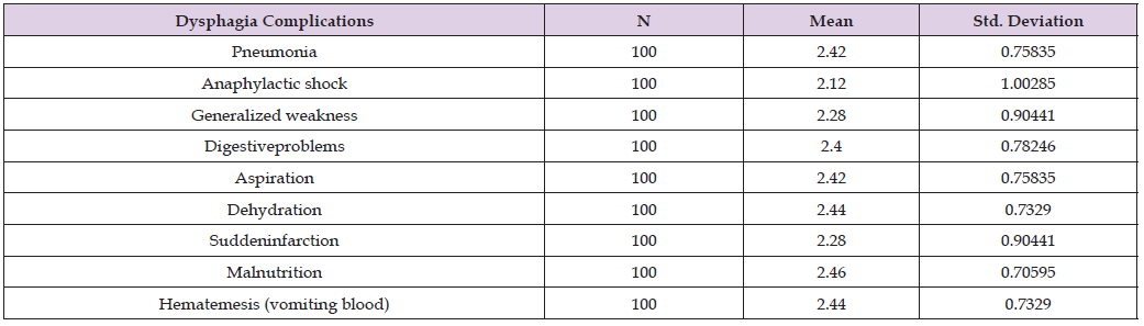 Complications of Dysphagia: In the third section, participants were asked questions regarding the complications of dysphagia to assess their awareness of the potential negative consequences of this disorder.