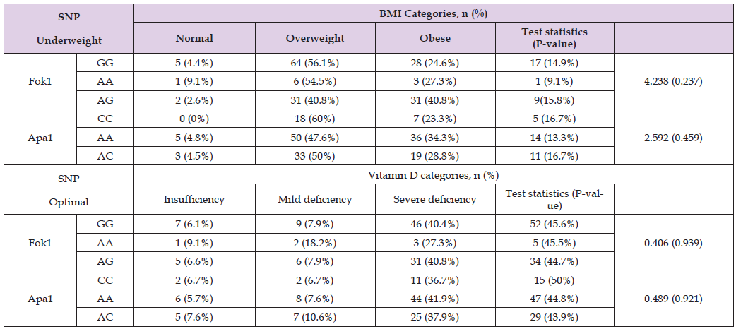 Keywords: Apa1; rs2228570; Fok1; rs7975232; Single Nucleotide Polymorphisms; SNP; Vitamin D Deficiency; Hypovitaminosis D; Obesity; Body Mass Index; BMI; Type 2 Diabetes; T2D