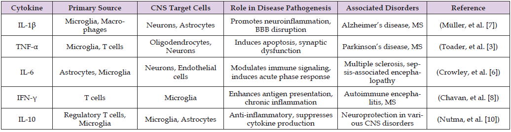 In disease states, the protective and destructive neuroimmune responses tend to be unbalanced. Activation of microglia and astrocytes on a chronic basis results in the excessive production of pro-inflammatory cytokines like IL-1β, TNF-α, and IFN-γ that amplify neuronal damage and lead to neurodegeneration. Alzheimer’s disease, Parkinson’s disease, and multiple sclerosis are examples of how immune dysregulation contributes to disease progression (Joller, et al. [2]). In Alzheimer’s, for instance, amyloid-β plaques trigger innate immune responses that propagate a cycle of inflammation and neuronal damage. Similarly, in multiple sclerosis, autoreactive T cells cross the blood-brain barrier and kill myelin, resulting in demyelination. Understanding such pathogenic processes is key to identifying new targets and biomarkers for therapy (Table 1).
