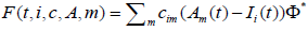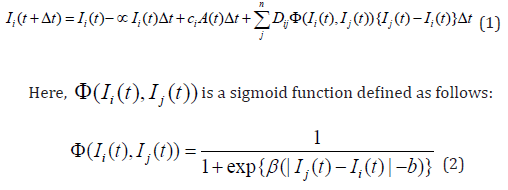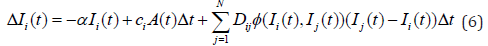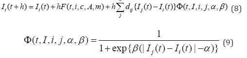 [7,8]. A(t) represents influence, and the coefficient i c is set individually