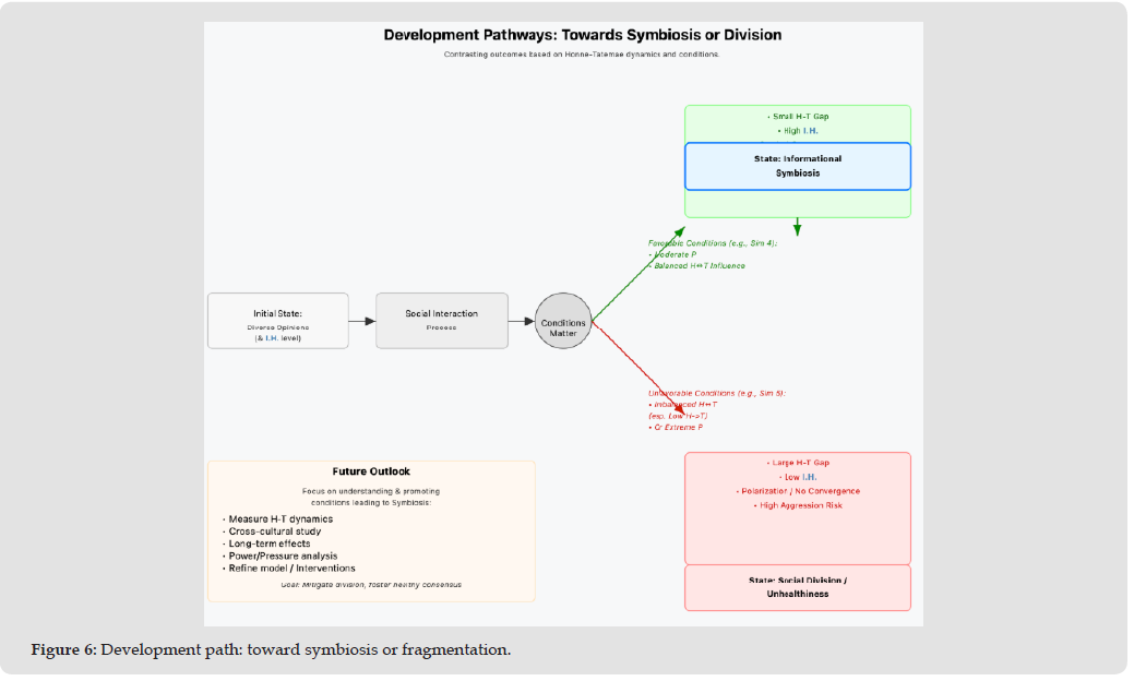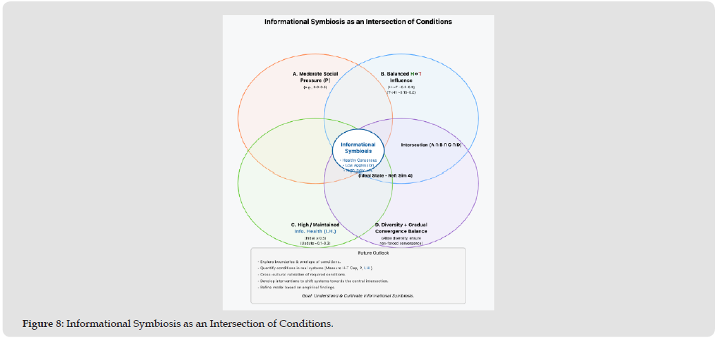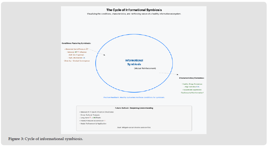 Path to Informational Symbiosis: When integrating the simulation results, the possibility of a new social practice that could be called “Informational Symbiosis” emerges, based on informational health. This refers to a state where individual informational health and healthy group consensus formation mutually support and strengthen each other (Figure 9).