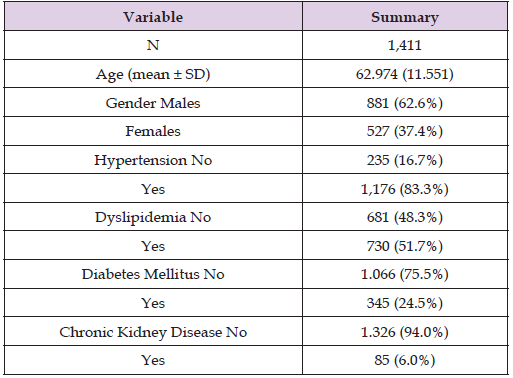 The cohort analyzed consisted of 1411 patients admitted to the Medical Institute Bayer (MIB) Tuzla between January and December 2024 for invasive cardiology evaluation, including diagnostic coronary angiography and/or PCI, either as elective or emergency admissions. Additionally, patients who were unexpectedly readmitted within 30 days following discharge were included in the analysis.