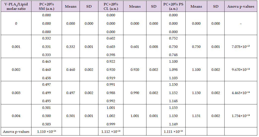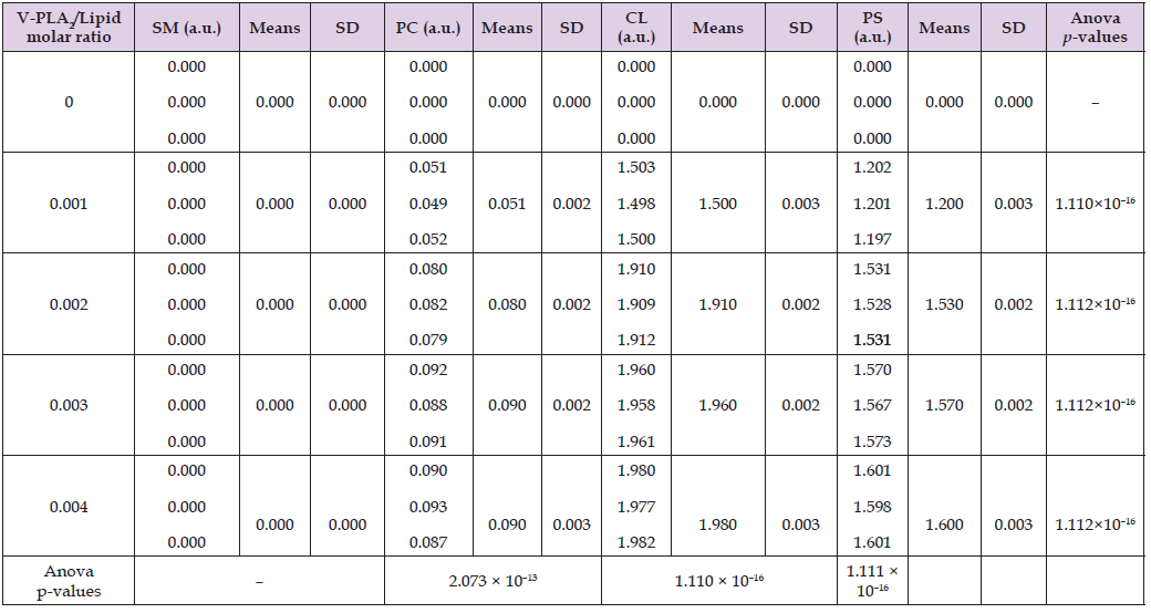 Abbreviations: PLA₂: Phospholipase A₂; sPLA₂s: Secretory PLA₂s; CL: Cardiolipin; PS: Phosphatidylserine; SM: Sphingomyelin; PC: Phosphatidylcholine; LUL: Large Unilamellar Liposomes; SD: Standard Deviation; CL: Cardiolipin; HDP-2: Heterodimeric Phospholipase A₂