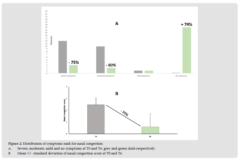 As before, the items were rated from 0 to 3, where higher scores indicated greater symptom severity. Some of participants also received concomitant pharmacological treatment, including anti-inflammatory agents, antihistamines, and had already used other decongestants before treatment with Zenasinil® spray. These co-treatments were administered based on individual clinical needs and physician discretion. About 80% of enrolled patients showed relapses in the last 3 months before the treatment with Zenasinil® spray.