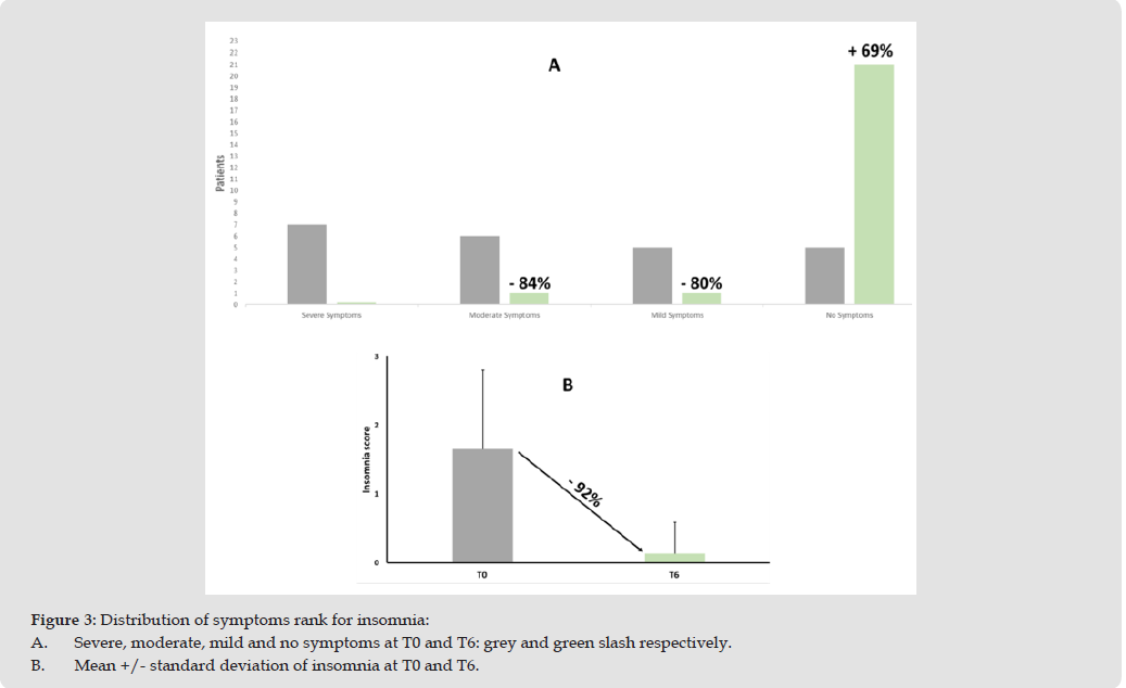 This aligns with Zenasinil® spray mechanism of action: it helps to reduce the viscosity of nasal mucus that is responsible of congestion supporting nasal drainage and preventing inflammation linked to mucus accumulation. This ultimately contributes to better breathing. Sleep quality also improved considerably (Figure 3). Initially (T0), 22% of the children had no issues with sleep, but after 6 months of using Zenasinil® spray alone and in combination with conventional pharmacological treatments, that number rose to 91%, showing a 69% improvement. Cases of severe sleep disturbances were totally reduced, while cases of mild and moderate sleep disturbances decreased by 80% and 84% respectively with respect to T0. A mean reduction of the insomnia score (as evidence of sleep quality) of 92% after Zenasinil® spray administration was recorded. These results again reflect the benefits of nasal fluidification, as improved airflow during the night is known to positively affect sleep, and nasal obstruction is frequently identified as a contributing factor to sleep- disordered breathing [14]. Appetite was the third key symptom evaluated. At baseline (T0), just over half of the children (52%) had no issues with appetite, but this percentage increased to 91% at T6-an improvement of 39%. Cases of moderate and severe appetite loss were totally reduced while cases of mild appetite loss also reduced by 67% with respect to T0, with a mean of reduction of loss of appetite score of 89% after Zenasinil® spray administration (Figure 4).