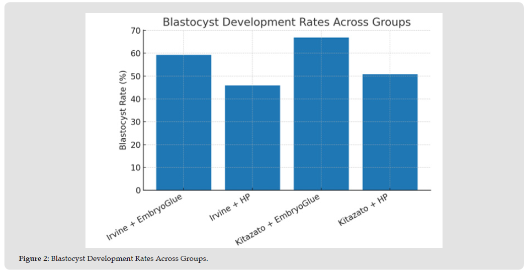 Results: Fertilization rates were similar in all groups (92.0–92.6%). Blastocyst formation rates were higher