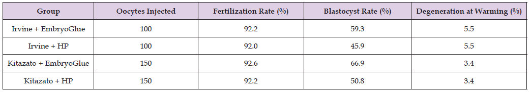 EmbryoGlue™, when applied as a short-term post-thaw culture medium, significantly improves blastocyst development from vitrified oocytes. Its incorporation into clinical oocyte banking and fertility preservation workflows may maximize embryo yield and improve ART outcomes.