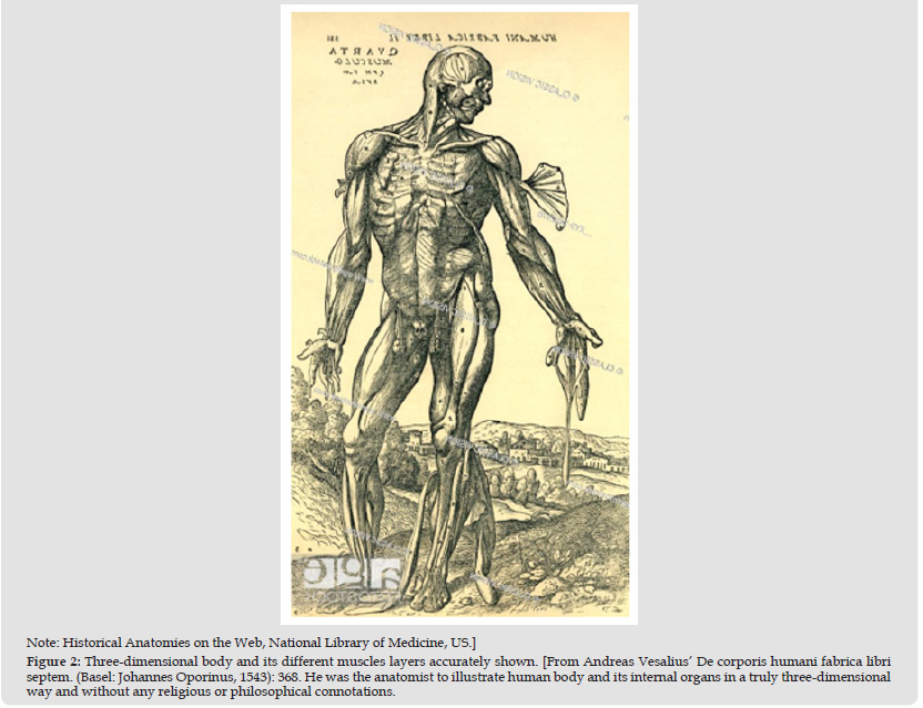 In February 1835, a memorial signed by 6,945 Hindu habitants of Calcutta, including all the managers of Hindu college, the parents and guardians of the students of English, was presented to Bentinck praying that the existing restrictions on the use of the English in the law courts be abolished [33]. It signifies that somewhat “universal” acceptance of English as the primary administrative language of the newly emerging modern state was phenomenally palpable. The most important educational feat of Bentinck was the foundation of the CMC. To be sure, CMC had ushered in “hospital medicine” in India. Hospital medicine itself was a new phase of development in the evolution of medicine, as distinct from its earlier phase ‘bedside medicine”. Disease appeared to being located within a three-dimensional body – symptom > illness > sign. Depth or volume of the body – the 3rd dimension – was added to symptom > illness perception whereby the body emerged to be of three-dimensional nature. Doctors were, then, to extract sign, i.e. pathology inside the body. Pictures shown below would help us to get at the point (Figures 1 & 2). The perception of this particular 3rd dimension or the depth/volume of the body was altogether absent in traditional healing systems like Ayurveda, Unani or Siddha. As Ackerknecht has aptly put it – “it was only at the hospital that the three pillars of the new medicine – physical examination, autopsy, and statistics – could be developed [34].” One of the key features of hospital medicine – pathological anatomy – was cultivated in Paris too [35].