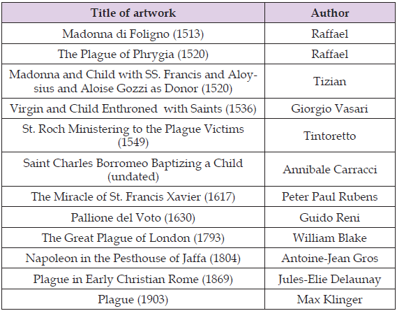 The impact of epidemics and pandemics of infectious diseases on visual arts, urbanism, and architecture is a complex topic. As literature on art does not present a coherent view of the impact of epidemics or pandemics of infectious diseases on visual arts, urbanism, and architecture, this study can only draw on individual summaries standing in parallel next to each other. The metaphors of silence, emptiness and oblivion in this study need to be interpreted in their relative, rather than absolute sense. It can therefore be concluded that the above-mentioned continuities and discontinuities need to be understood as a background of the plastic development (i.e. one with many shapes and dimensions) of the iconography in visualisation of plague epidemics. The key moments in the development of the iconography in visualisation of plague epidemics are the following: