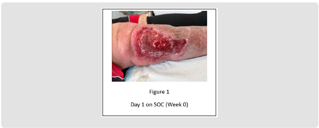 • SOC (weeks 1–6): modest reduction in wound size, plateau in healing