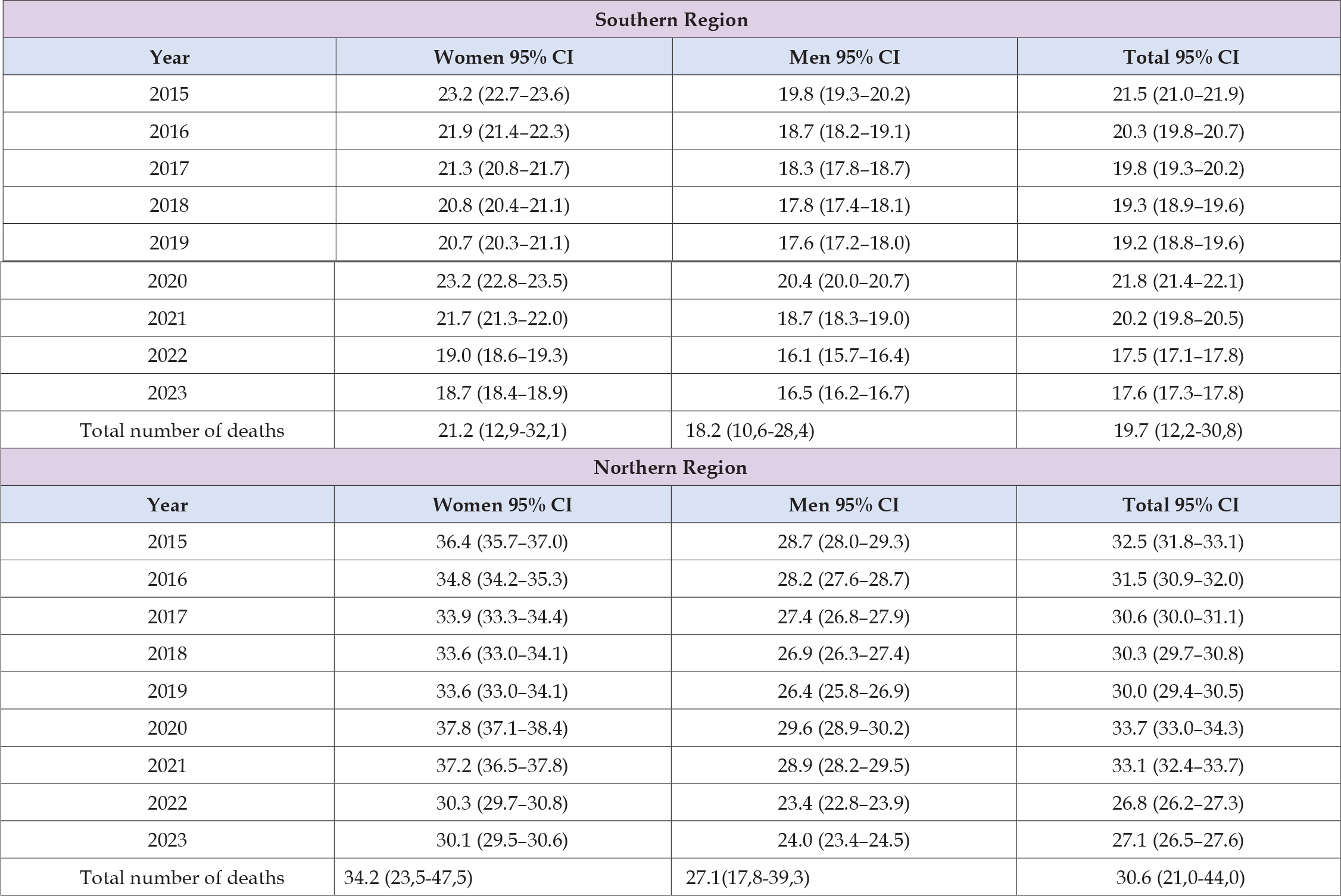 mortality in the north — 34.2 per 1,000 (equivalent to 342 deaths per 100,000 women annually). To assess