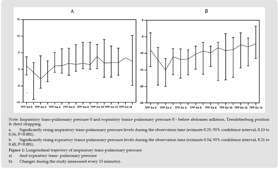 Monitored Parameters: Continuous measurements were carried out, starting from the patient’s anesthesia stage including: blood pressure, saturation, pulse, exhaled carbon dioxide, respiratory pressures monitoring (maximum inspiratory pressure, PEEP, inspiratory pressure, inspiratory oxygen concentration, as well as compliance and pulmonary resistance). Pressures recording was conducted every 15 minutes. Upon the induction of the anesthesia, placing the patient in a steep Trendelenburg position and tying the chest, inflating the abdomen, and 30, 60, 90 and 120 minutes later (in cases where the operation was prolonged beyond 180 minutes even after 180 minutes), as well as at the end of the surgery (removing the instruments and emptying the abdomen of the gas) - measurements of arterial blood gases, inspiratory and expiratory esophageal pressures and trans-pulmonary pressures were taken.