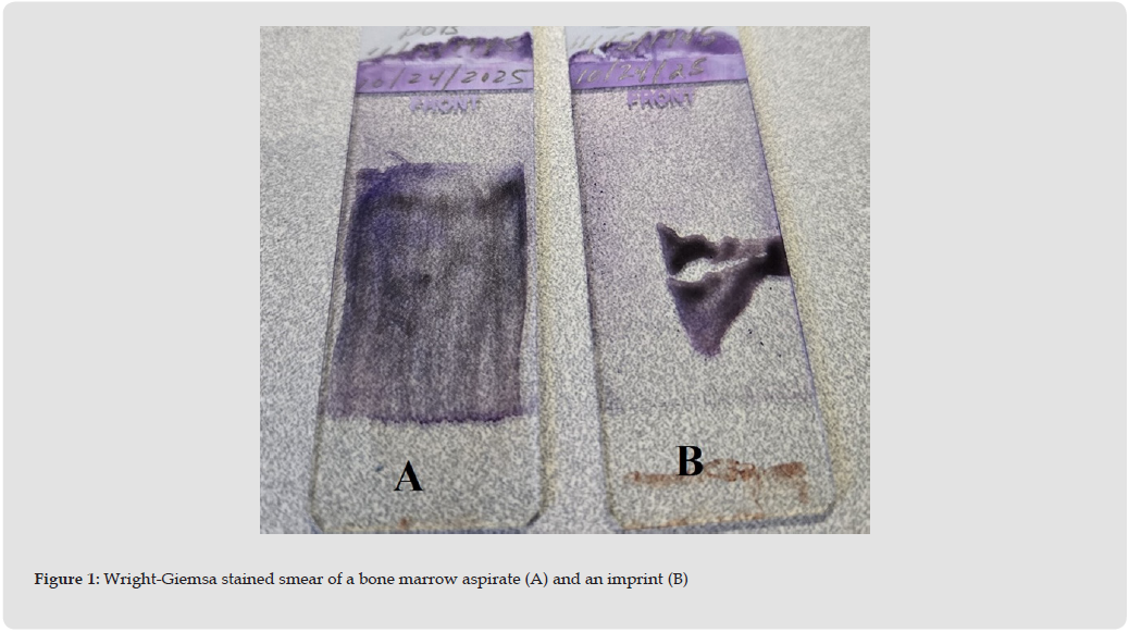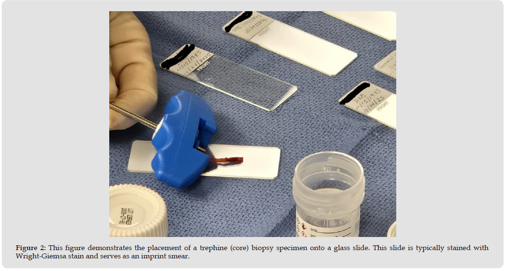 Bone marrow aspirations from the sternum or posterior ilium, along with the resulting cytological smears, are commonly used to diagnose and manage various hematological and certain non- hematological disorders [1-3]. However, achieving a definitive cytological diagnosis can be challenging when bone marrow aspirations result in a dry tap or a bloody tap. These situations are not uncommon, particularly when the marrow is densely packed with malignant hematopoietic cells, carcinoma, or in cases associated with myelofibrosis [4-7]. A bloody tap during bone marrow aspiration can also be caused by a faulty technique. In such instances, a bone marrow imprint obtained from a trephine (core) biopsy can be extremely helpful, providing valuable information that may complement or even lead to an accurate diagnosis.