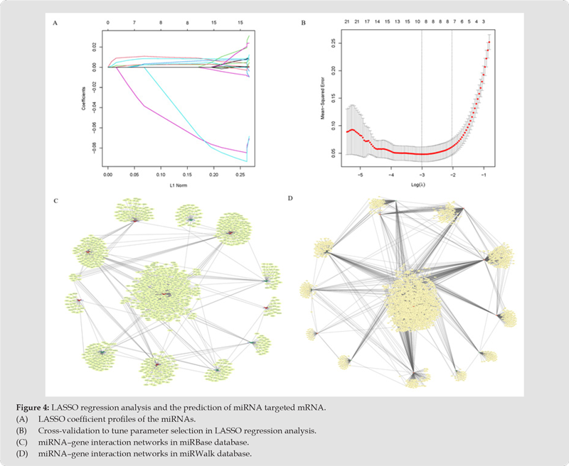 Co-expression Network Analysis (WGCNA) and LASSO algorithm were used to identify the miRNAs closely related