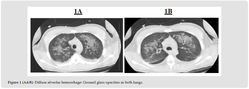 On top of these, excess catecholamine levels in the blood will trigger alveolar capillary endothelial dysfunction and coagulation abnormalities [7]. Endothelial injury and microvascular thrombosis can the penultimate events in connective tissue disorders [8]. These state of affairs will grease the wheels for the uncoupling and fragmentation of the alveolar capillaries. As alveolar capillaries are desecrated, there will be extravasation of the blood from the intravascular space into the interstitial space in the lung tissues. Pathological findings in DAH can include neutrophilic infiltration of alveolar membranes, endothelial edema, fibrinoid necrosis. intra-alveolar edema, capillary congestion, microthrombi, hyaline membrane formation and leaking of blood into alveoli [9]. Pulmonary capallaritis, which encompasses neutrophil infiltration along the alveolar septa is hallmark of anti-neutrophil cytoplasmic antibody associated vasculitis or glomerulonephritis [10]. DAH can be ultimate presentation of various disorders including various lung diseases, autoimmune disorders, connective tissue disorders, coagulation disorders, vasculitis, mitral stenosis, toxins, excessive antiplatelet therapy, pheochromocytoma, adrenal tumors and secondary cortisol secretion and malignancies [5,11,12]. Some of the presenting clinical symptoms of DAH can range from shortness of breath, cough, hemoptysis, fever, dilated cardiomyopathy, acute coronary syndrome and diffuse alveolar infiltrates [5,13].