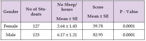 score with the higher number of sleeping hours (P < 0.0001). It was interesting to find out that female students