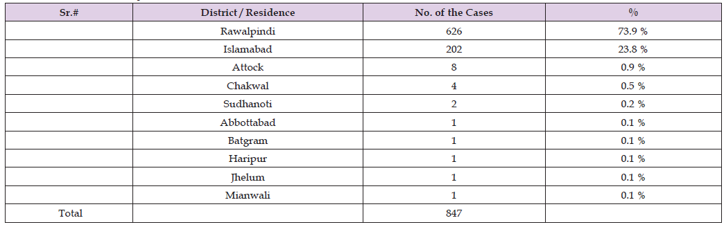 Total 847 children presented with clinical manifestation of dengue at Holy Family Hospital Rawalpindi during August – December 2024. Most (59.3%) of them were males. Their mean age was 8 ± 3.12 years. Majority of them was in age bracket of 10-12 years as depicted below in Figure 1. Most of the visiting pediatric cases belonged to Rawalpindi district followed by Islamabad and Attock as shown below in Table 1. Out of 847 cases, 721 (85.1%) were not having any other associated disease. 1 case had hantaviral infection, 1 had malaria and 6 were having typhoid. 118 (13.9%) were diagnosed with hemorrhagic infections that were not linked with dengue fever. Initially subjecting to NS1 testing, only 124 children were found to be suffering from dengue infection including both severe and non-severe dengue as depicted below in Figure 2. Of the 124 confirmed dengue cases, 88 had non-severe dengue infection while rest of the 36 cases diagnosed with DHF and DSS (broadly categorized as severe dengue cases). Gender-wise distribution of all children presenting to Dengue OPD is illustrated below in Table 2. Of the 847 pediatric cases, about 597 got consultation in Out Patient Department (OPD) of Pediatrics at Holy Family Hospital, 245 got admitted in Pediatric ward but later discharged with stable condition. Only 5 left the hospital against medical advice. None of the cases expired.