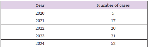 This study collected a total of 115 cases over four years, corresponding to an average of 28 cases per year. During the entire study period, the Human Genetics Laboratory of FMPO at UCAD was the only public facility in Senegal capable of performing DSD diagnoses. Notably, awareness of this diagnostic service was not uniform among clinicians in public hospitals, which likely contributed to the relatively modest prevalence observed. Nevertheless, the prevalence in our cohort remains higher than that reported in other low-income countries. For example, prevalence rates in Côte d’Ivoire [2] and Kenya [3] were comparatively low, whereas South Africa reported considerably higher rates [4]. A summary of DSD prevalence by country is presented in Table IV [2-5]. In addition, the cost of these diagnostic analyses posed a significant barrier, given the average purchasing power in Senegal. Limited clinician awareness combined with financial constraints likely explains why the observed prevalence of DSD remained below anticipated levels. These findings highlight the need to improve access to diagnostic services and raise awareness among healthcare providers to ensure timely and accurate identification of DSD cases.