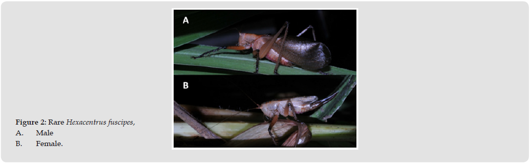 their flowering season between March and April. Hexacentrus fuscipes is a rare species, found only in densely