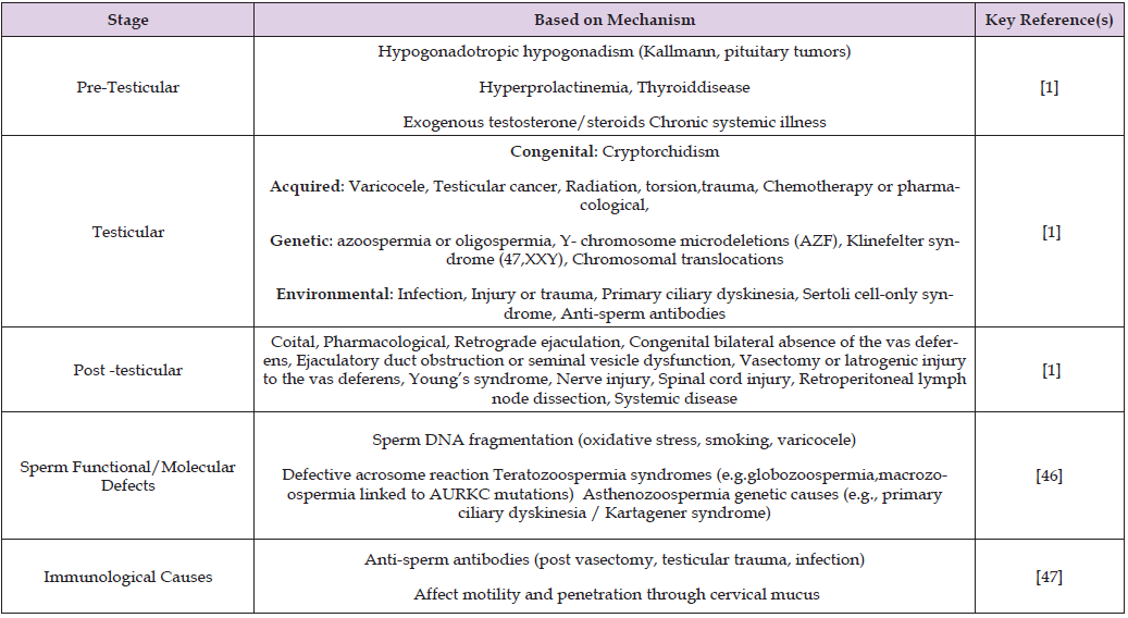 (d) Qualitative defects in spermatogenesis [45]. Some of the common reasons of male infertility according to mechanism are listed in Table 1.