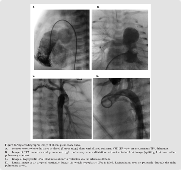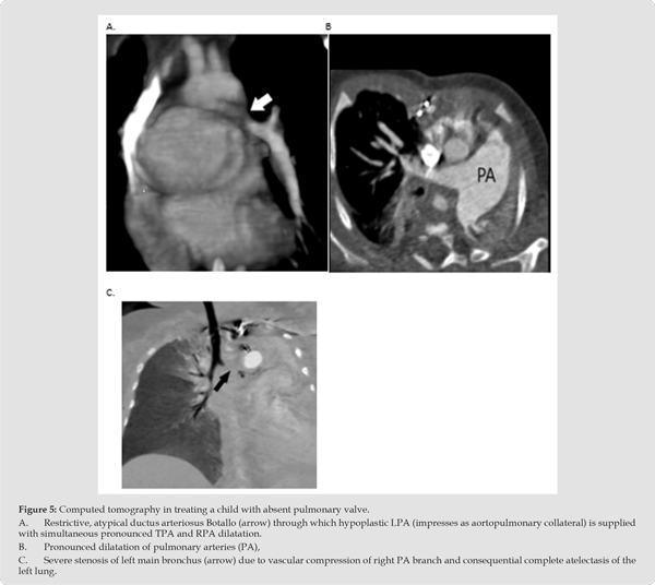 Methods And Results: We present four patients, all with the entity manifested as a absent (dysfunctional) pulmonary valve with various stenosis and insufficiency degrees and as a pathological enlargement of MPA and RPA dilatation, with consecutive pathological impression on large airways and consequently respirational insufficiencies with lethal outcomes also as possibility. In at least three patients there is also atypical pathology of DA, and wide spectrum of pathologic changes in the right cavities of the heart: RV hypertrophy, RA enlargement, non-compaction cardiomyopathy and tricuspid insufficiency. In two patients the defect was diagnosed in utero. We followed the guidelines suggested in recent literature;