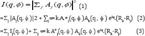 Here the first summation contained on the incoherent (intensity) summation over different particles (already considered in [5-13] and [14] while the second summation contains the new (coherent) terms which give rise to interparticle interference. Likewise,
