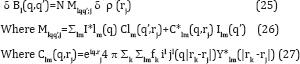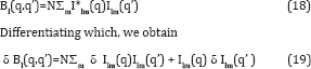 I'lm(q) =Σm.[Dlm,m(α 1,β 1,γ 1)+Dlm,m(α 2,β 2,γ 2) ] Ilm(q) (15)