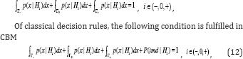 Proof: Because of specificity of decision rules of CBM, alongside of hypotheses acceptance regions, the regions of impossibility of making a decision exist. Therefore, instead of the condition