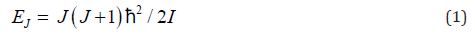 The minimized energies (Emin’s) of compounds 1-10 (except 9) calculated by HF/6-311G(d,p) method (Table 1) were linearly correlated with Hansch electronic values [11] (Figure 2). Thus, all electronic effects of all substituents were taken into consideration in HF/6-311G(d,p) calculation. Similar to the rotational spectroscopy for end-over-end rotation, rotational energy (EJ) was quantized as Eq. (1), where J and I were rotation quantum number (J= 0, 1, 2, 3,…) and moment of inertia, respectively [12].