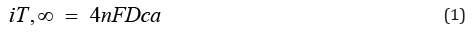 SECM in Feedback Mode: The feedback mode of SECM is the most widely used one. In this mode, a current flow through a microelectrode situated close to a substrate and immersed in an electrolytic solution having a redox mediator. Typically, the micro-disk electrode is set at a potential that allows to attain a steady state diffusion-controlled current iT,∞, resulting from the electrochemical reaction of the mediator redox pair (O + ne- ↔ R), where iT,∞ becomes a function of the concentration of reactant species and its diffusion coefficient, as shown by the following equation: