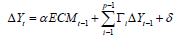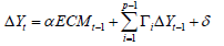 In the formula, ECMt-1 is the error correction term. Compared with the AVR model. The error correction term is an important feature to distinguish the two. The error correction term reflects the long-term equilibrium relationship of each variable, and the deviation of long-term equilibrium can be corrected by quick shortterm adjustment. Before building the VEC model, the Johansen test is needed to define the stability and reliability of the model.