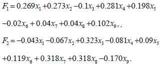 Where Fi is the score of the i factor; x1, x2 , xp is the standardized value of the index; the corresponding coefficient is the component score coefficient; The total element score is equal to the weighted arithmetic mean of the scores of each factor, 10 that is