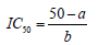 Then, calculate the IC50 which is obtained from the linear regression y = ax + b with the formula